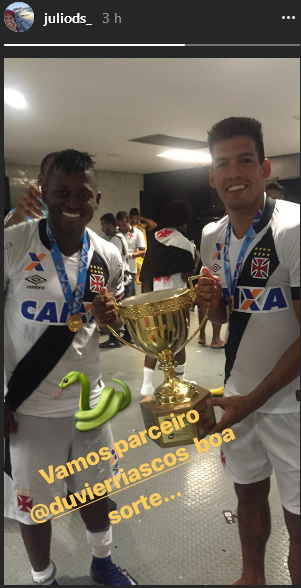 Ex-jogador do Vasco, Julio dos Santos posta imagem com Riascos e deseja boa sorte ao atacante