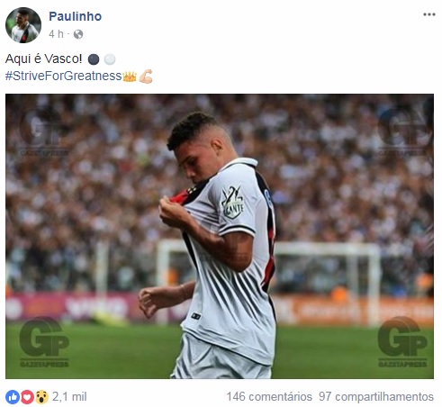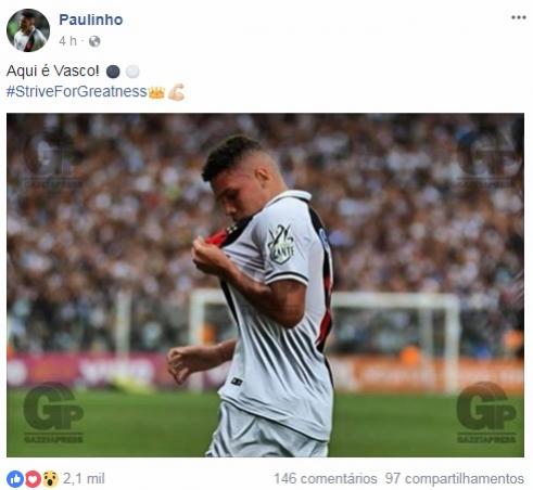 Fonte: NETVASCO (texto), Facebook do jogador Paulinho (imagem)