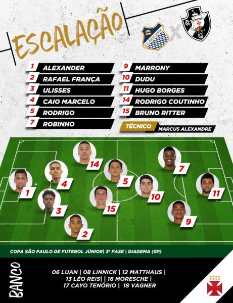 @VascodaGama escalado na Copinha diante do Água Santa. Vale vaga para as oitavas de final. Vem com a gente pela @RdMaisEsportes. http://www.redemaisesportes.com.br