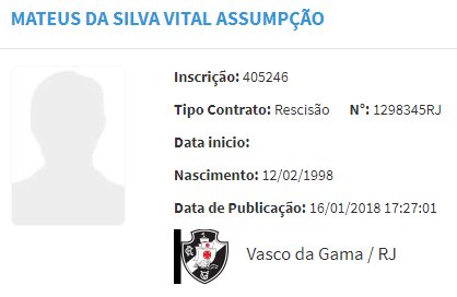 Rescisão de Mateus Vital com o Vasco é publicada no BID