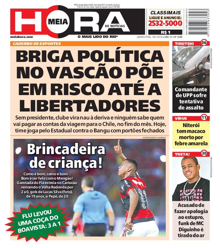 A crise política no Vasco foi destaque de diversos jornais e suplementos esportivos no Rio de Janeiro. Desde o dia 17, o clube não tem presidente, e sim três administradores provisórios. Como consequência disso, o jogo contra o Bangu terá portões fechados em São Januário.