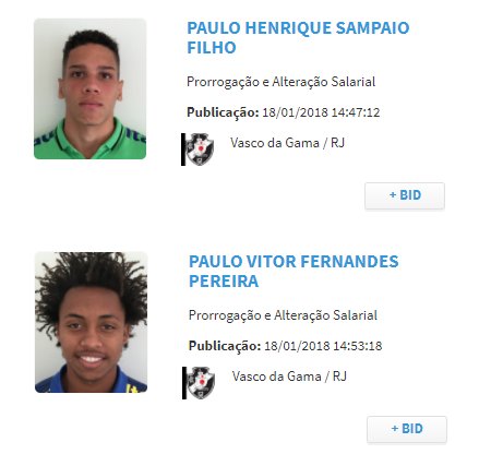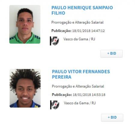 Paulinho e Paulo Vitor tiveram seus contratos prorrogados e publicados no BID pelo @VascodaGama: