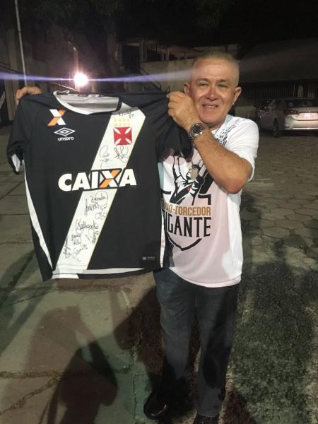 Corrigindo: o seu Natan ganhou a de jogo do Nenê e uma outra, a preta, com os autógrafos. #gevas