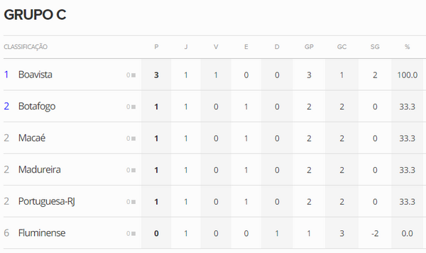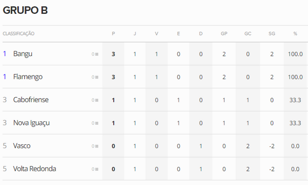 No encerramento da 1ª rodada da Taça Guanabara, o Vasco, que perdeu para o Bangu por 2 a 0 ficou na 5ª posição do grupo B, fora da zona de classificação para as semifinais do turno.