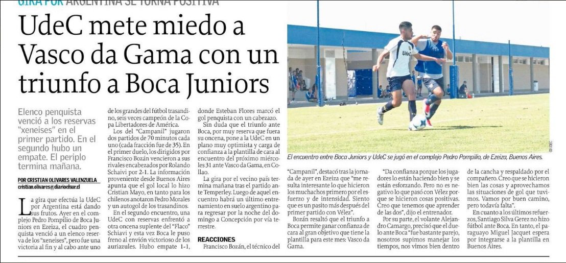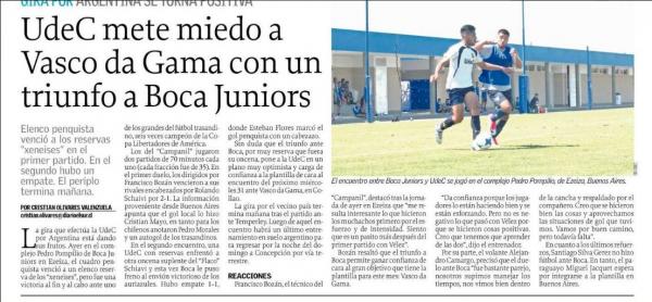 Jornal chileno estampa em suas páginas que Univ. Concepcion coloca medo no @VascodaGama após vencer o Boca Juniors. O adversário do Vasco na Libertadores bateu os reservas da equipe argentina por 2 a 1.