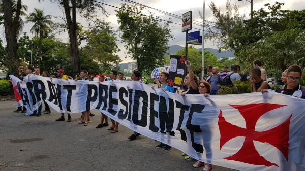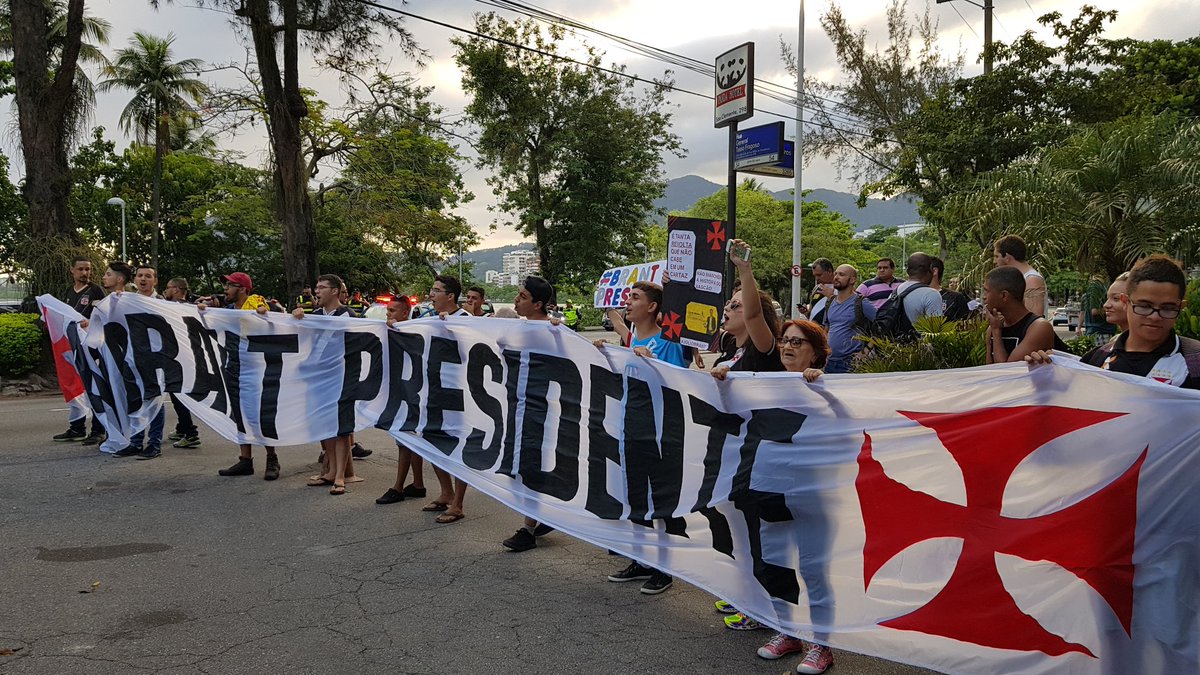 Reportagem @lancenet já aqui na Lagoa. Já há torcida com grito "Fora, Eurico" e faixa "Brant presidente" do Vasco #lanceVAS