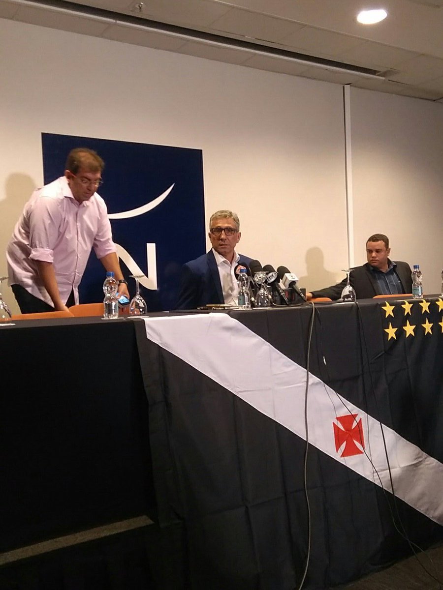 Ao lado de Frederico Lopes, Alexandre Campello acaba de chegar para a coletiva. (📷: @PiresRicardinho)