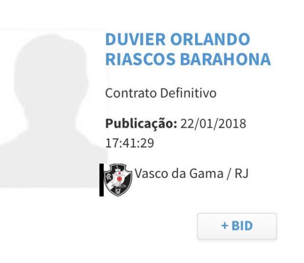 Riascos foi registrado no BID e pode voltar a jogar pelo Vasco