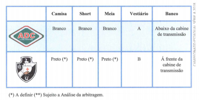 De acordo com o Plano de Ação para Cabofriense x Vasco publicado pela FFERJ, o Gigante da Colina estreará nesta partida seu uniforme preto fabricado pela Diadora.