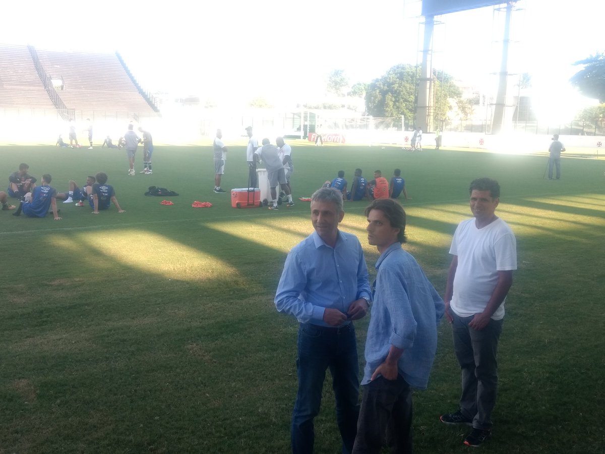 Alexandre Campello acompanha do gramado o primeiro treino do Vasco como presidente empossado.