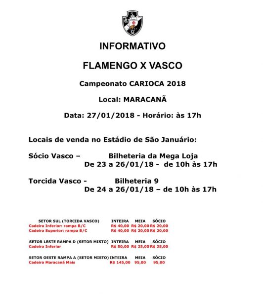 23/01/18 - Basquete: Informações sobre ingressos para Vasco x Urubu, na Arena Carioca 1