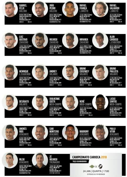 Veja kit do Vasco para a imprensa com os jogadores relacionados para esta 4ª-feira
