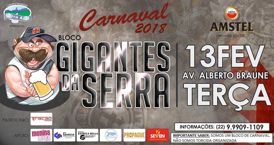 Bloco vascaíno Gigantes da Serra desfilará em Friburgo no dia 13/02