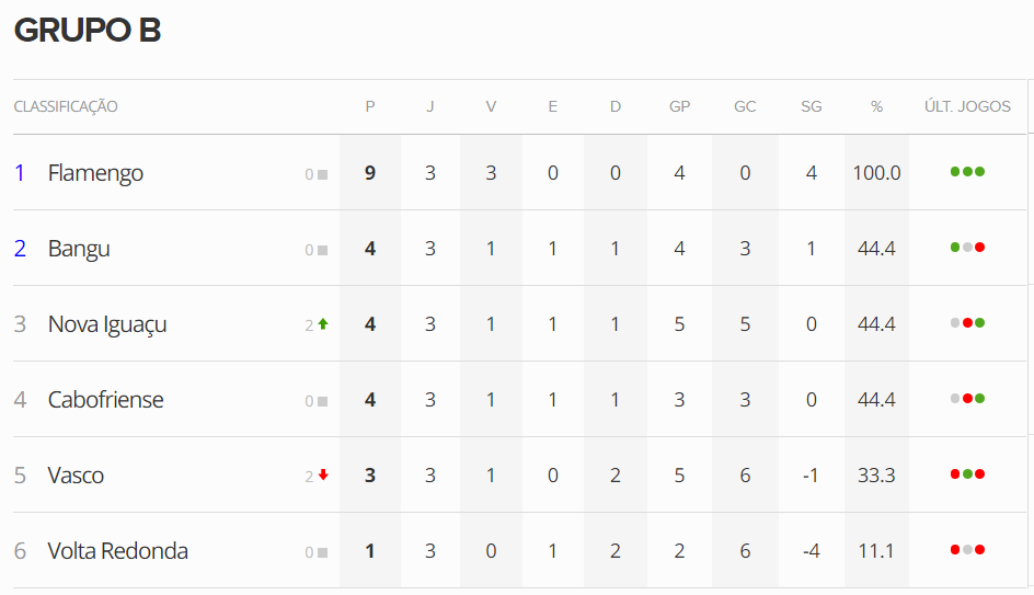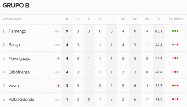 A vitória do Nova Iguaçu sobre o Volta Redonda por 2 a 0, em jogo encerrado agora há pouco, deixa o Vasco numa colocação ainda mais incômoda no Grupo B da 1ª fase da Taça Guanabara: 5º lugar entre 6 equipes. Botafogo x Macaé, às 19h30, fecha a 3ª rodada.
