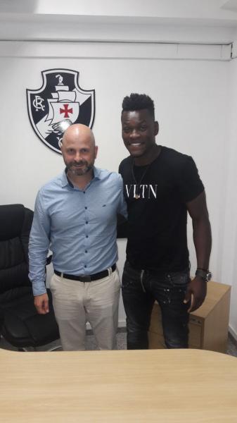 Paulão assinou com o Vasco. Contrato de empréstimo até o fim de 2019. Na foto, zagueiro com Carlos Flores, do Prattes Group, que o acompanhou. #gevas #trcentral