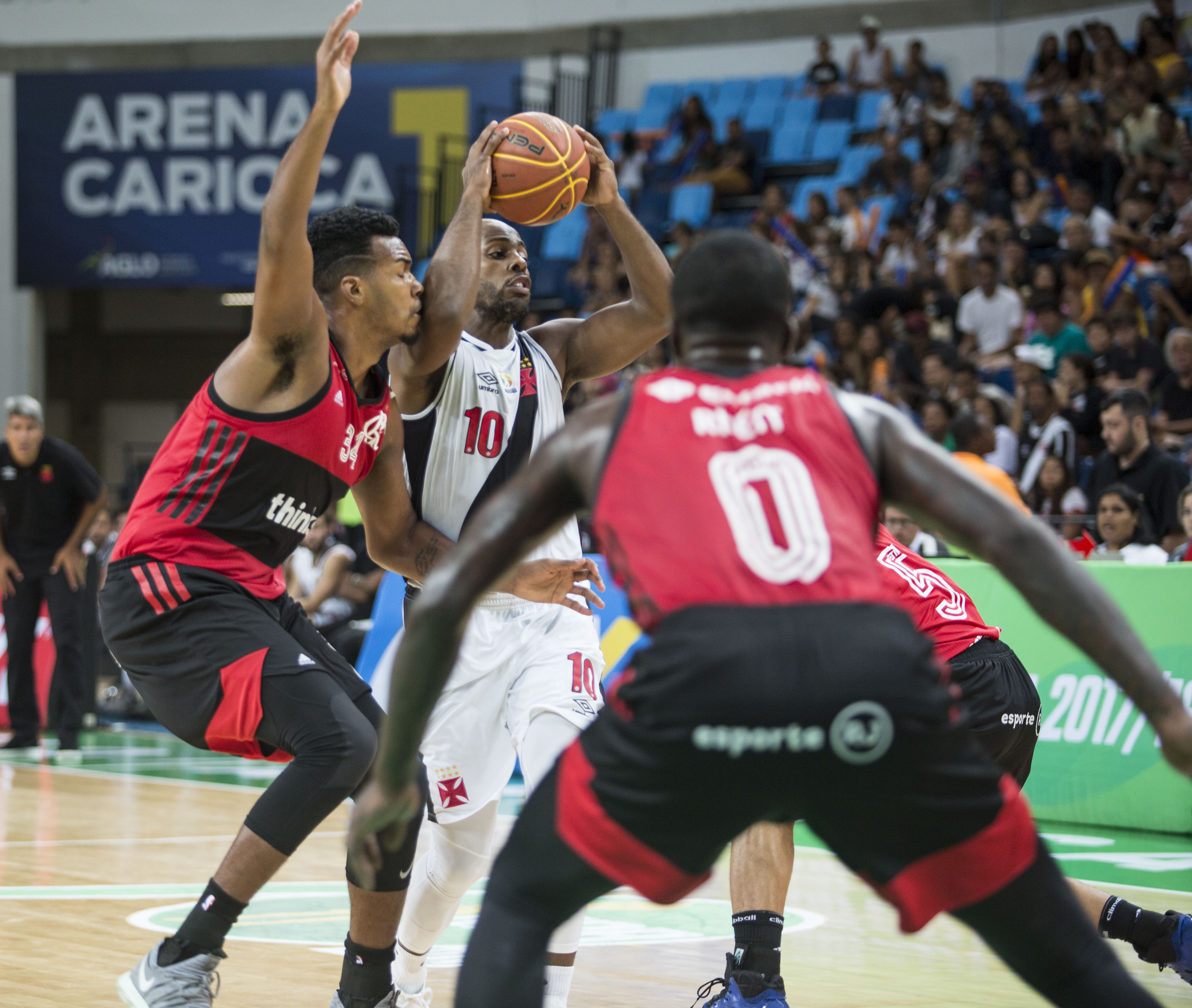 Primeiro, na quadra. Depois, no campo. O dia 27 de janeiro reservou uma situação incomum para torcedores de Flamengo e Vasco da Gama. Na Arena Carioca 1, no início da tarde, clássico no basquete. No Maracanã, a partir das 17h (de Brasília), jogo pelo Campeonato Carioca no futebol. E, ao menos no primeiro ato do espetáculo, melhor para o Rubro-Negro. Os comandados de José Neto não se intimidaram com a torcida única de vascaínos nas arquibancadas, devido à determinação da polícia militar para os clássicos cariocas no Novo Basquete Brasil, e saíram vitoriosos pelo placar de 89 a 75 se mantendo na liderança do campeonato e chegando a oito triunfos consecutivos.