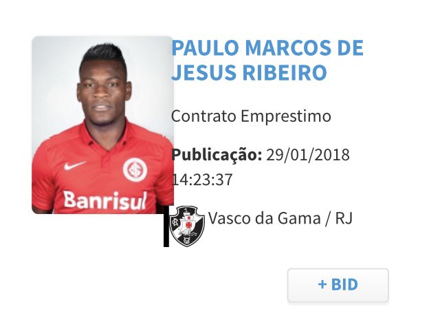 Zagueiro Paulão foi registrado no BID pelo @VascodaGama: