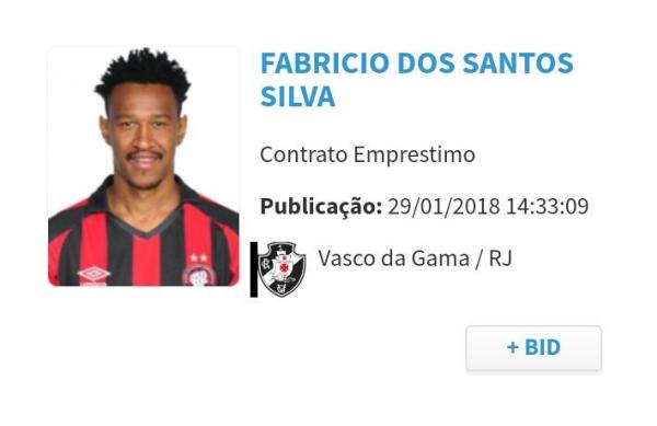 15/01/18 - Confira a ficha de Fabrício, novo lateral-esquerdo do Vasco