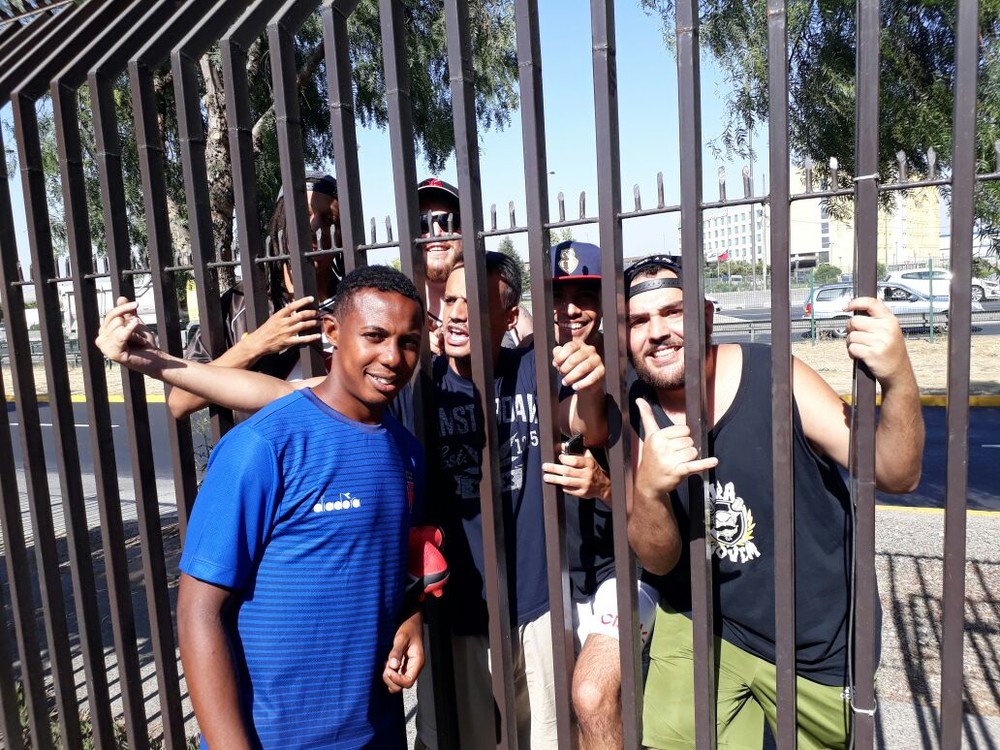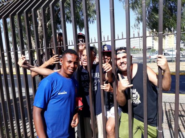 Em Santiago, os amigos tentaram ver o treino do Vasco no CT da Universidad de Chile. Barrados, deram um jeito brasileiro para acompanhar e, depois, tirar foto com os jogadores.