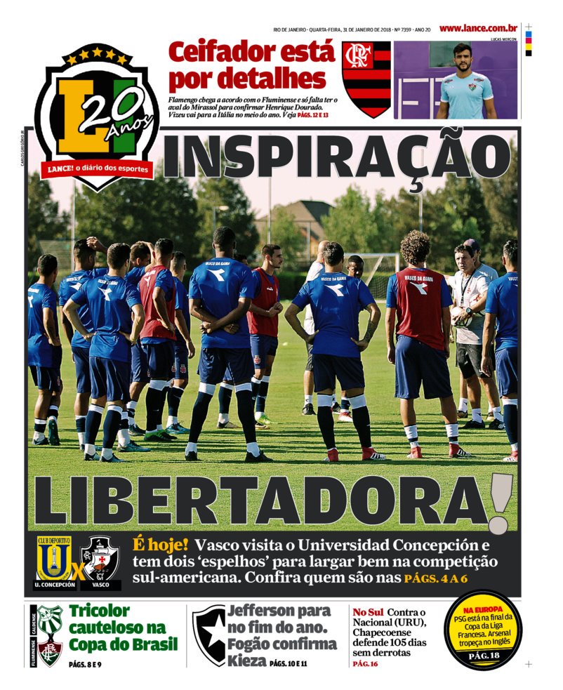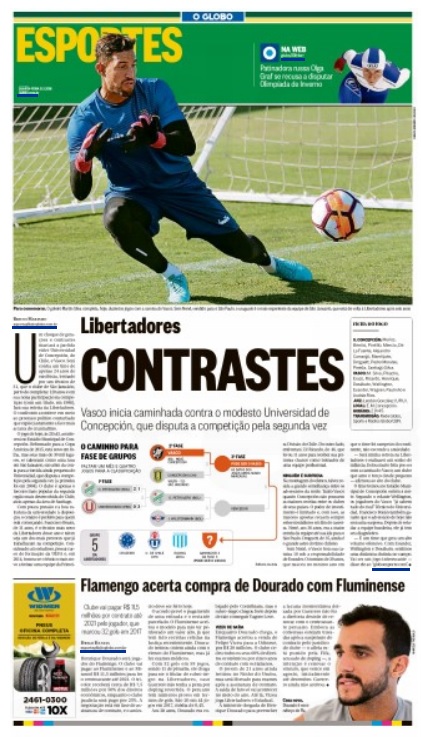 Veja como a imprensa destacou a estreia do Vasco na Libertadores nesta 4ª-feira, contra o Universidad de Concepción, no Chile: