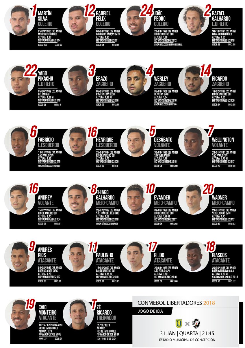 Confira os relacionados do Vasco para o jogo contra o Universidad de Concepción