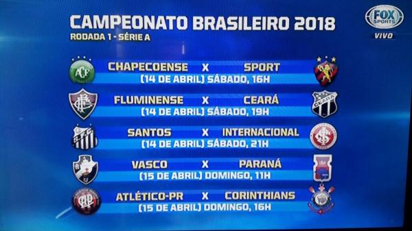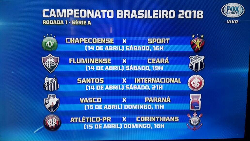 O Vasco estreia no Brasileiro 2018 no dia 15 de abril, domingo, às 11h, em casa (provavelmente São Januário), contra o Paraná Clube.