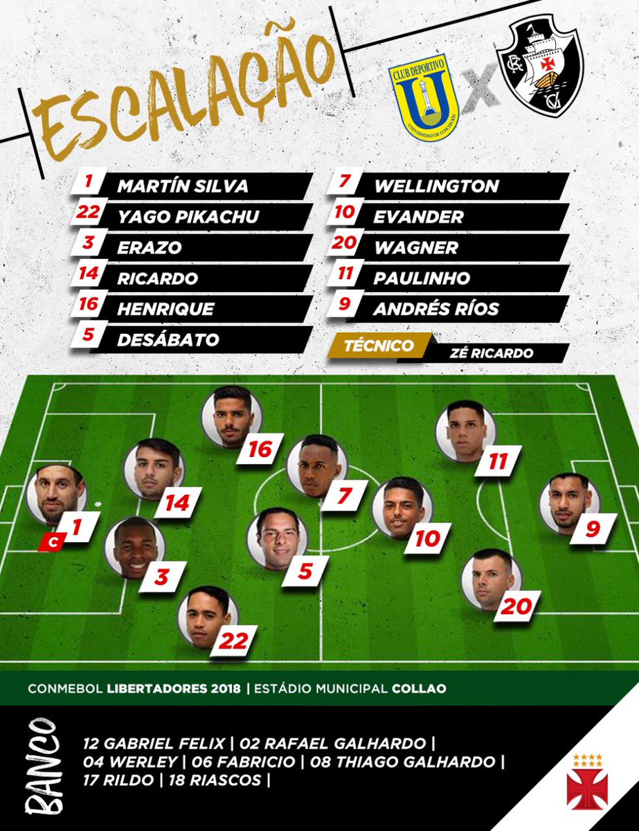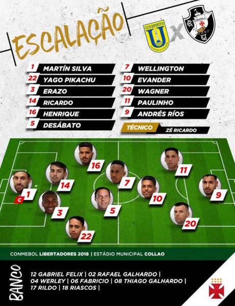 Confira a escalação do Vasco para a estreia da Libertadores contra o Universidad de Concepción
