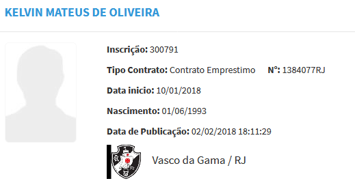 Novo contrato de empréstimo de Kelvin com o Vasco é registrado no BID