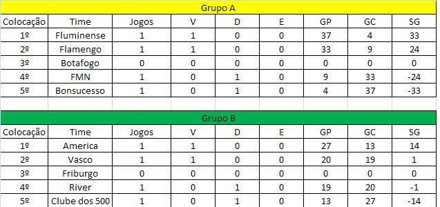 Fluminense e America iniciam a competição na liderança de seus grupos pelo critério do saldo de gols!