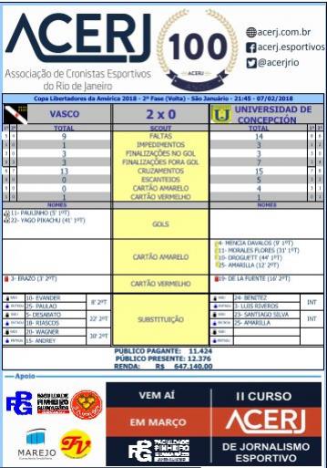 07/02/18 - Palpite NETVASCO: O resultado mais palpitado foi Vasco 3 x 0 Universidad de Concepción-CHI