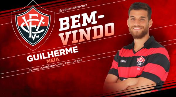 O Vitória segue fortalecendo o seu elenco para a sequência da temporada 2018. O Rubro-negro acertou o empréstimo do meia Guilherme junto ao Vasco até o final do ano. Natural do Rio de Janeiro (RJ), o atleta de 23 anos começou a carreira no próprio clube carioca, onde atuou até 2015, quando foi emprestado ao Bragantino-SP.