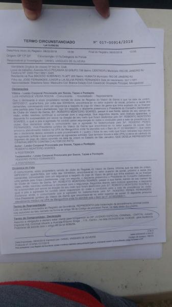 O sócio remido Luis Henrique Vieira Roxa, que acusou Roberto Monteiro de agressão, fez um boletim de ocorrência.
