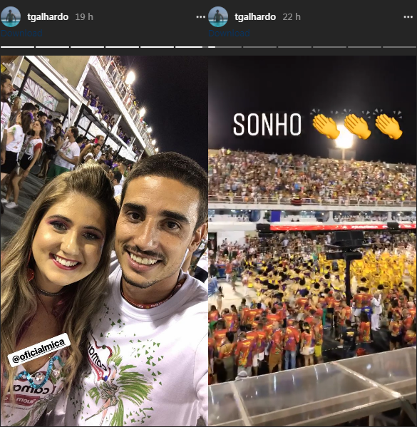 Thiago Galhardo vai ao Sambódromo e posta vídeos no Instagram