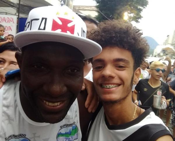 O ex-zagueiro Odvan marcou presença no bloco do Gigantes da Serra, em Nova Iguaçu, e posou para a foto com torcedor vascaíno. 💢⚪️⚫️