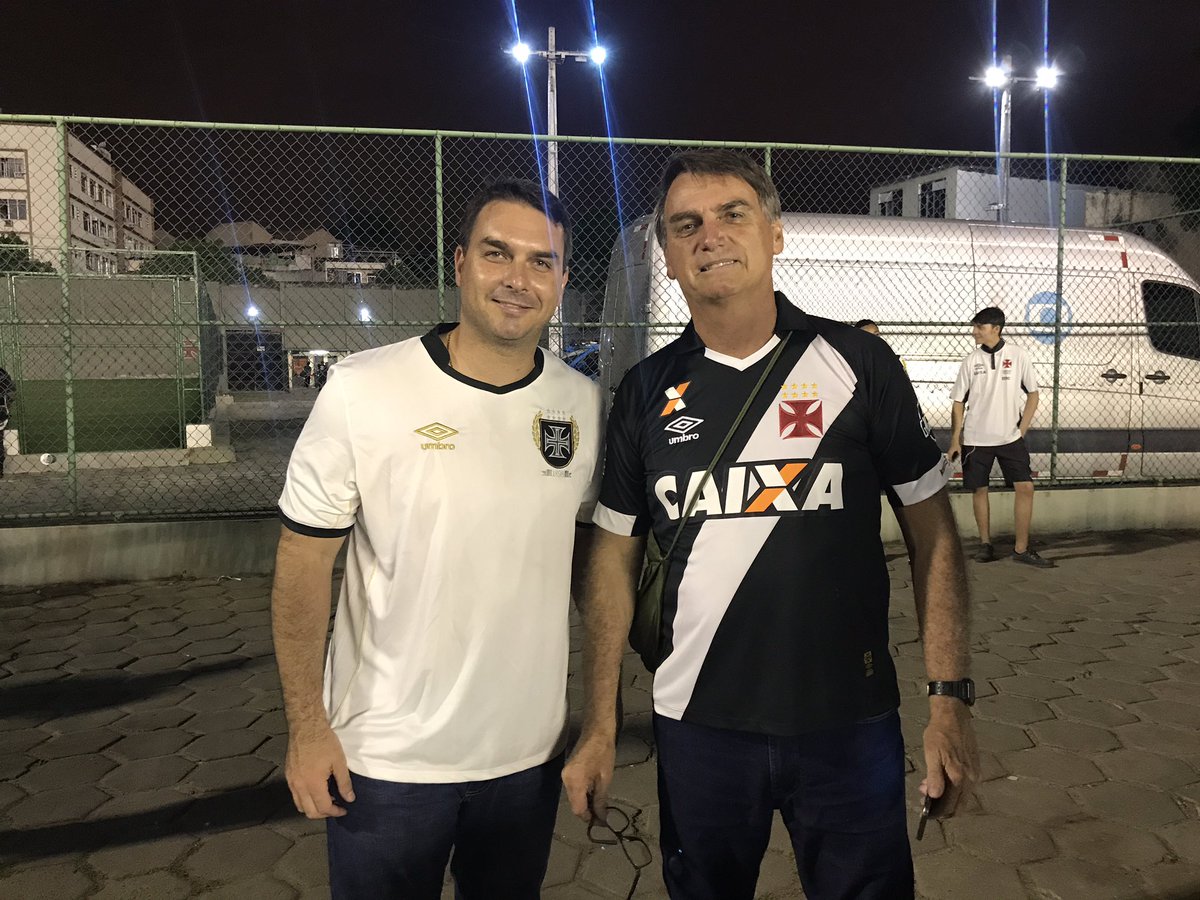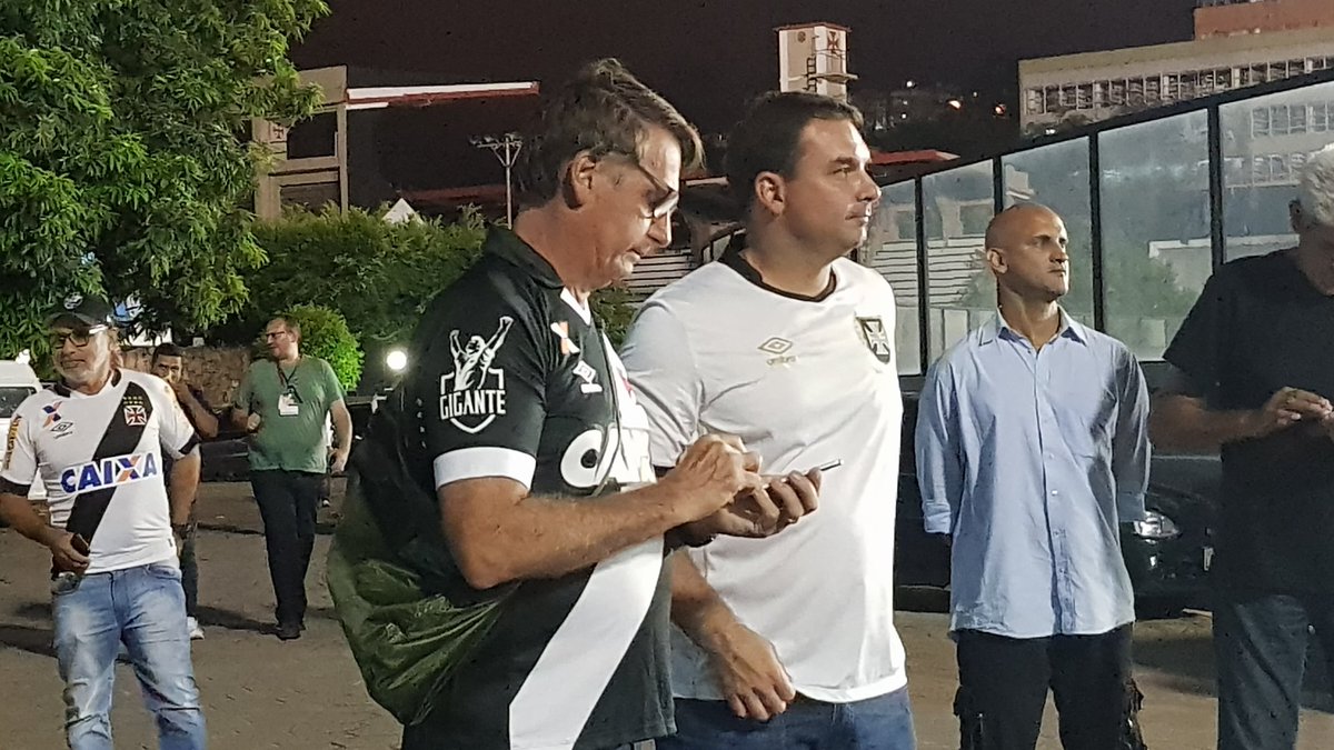 Políticos Jair e Flávio Bolsonaro estão em São Januário com camisas do Vasco; veja foto