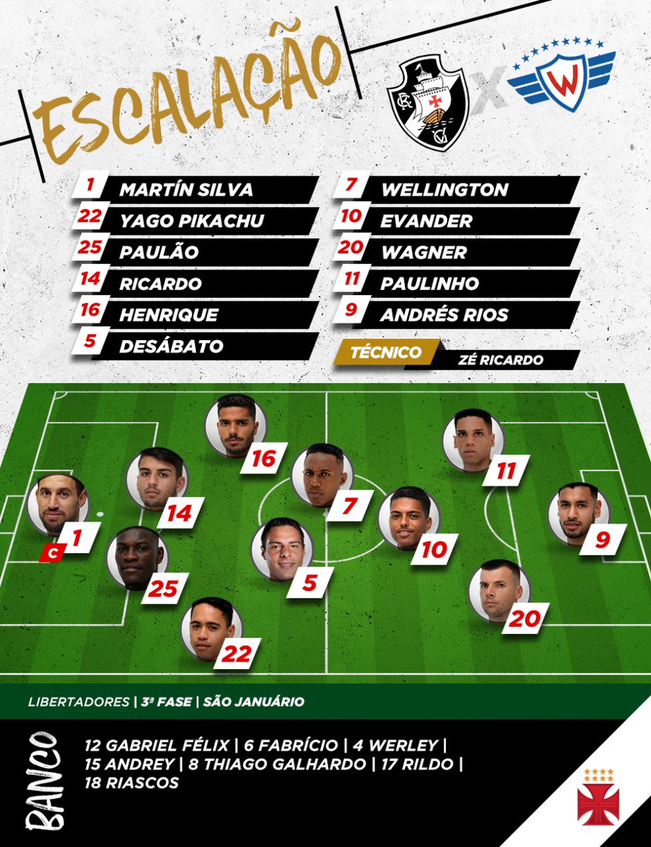 Confira a escalação do Vasco para o jogo desta 4ª-feira contra o Jorge Wilstermann