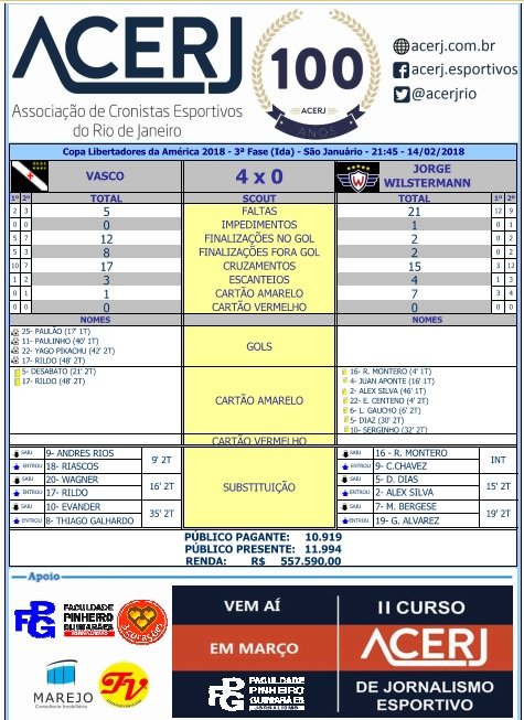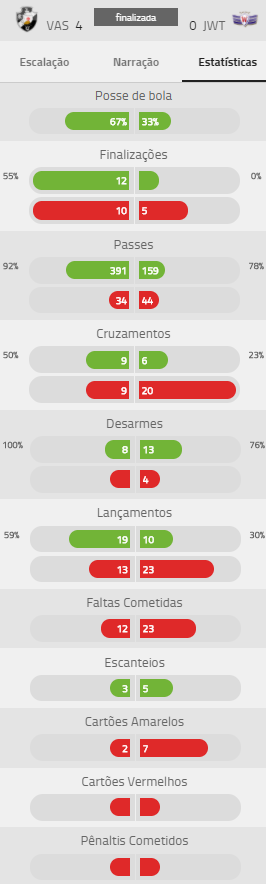 Confira estatísticas de Vasco 4 x 0 Jorge Wilstermann