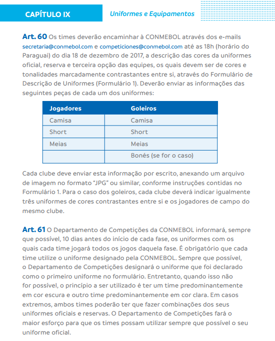 Trecho do regulamento da Libertadores