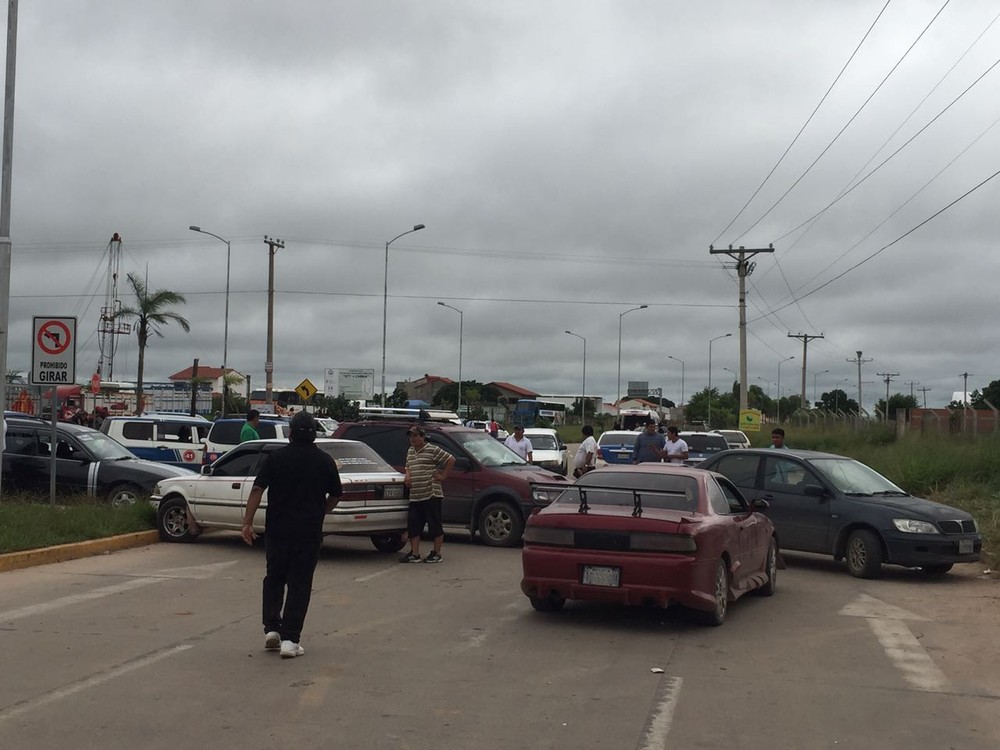 Ao chegarmos a cerca de 4km do aeroporto, começamos a ver pessoas com malas andando pelo acostamento. Na última barreira, nos foi dito que precisaríamos trocar de carro, pegar um táxi credenciado do Viru Viru para fazer os últimos quilômetros.