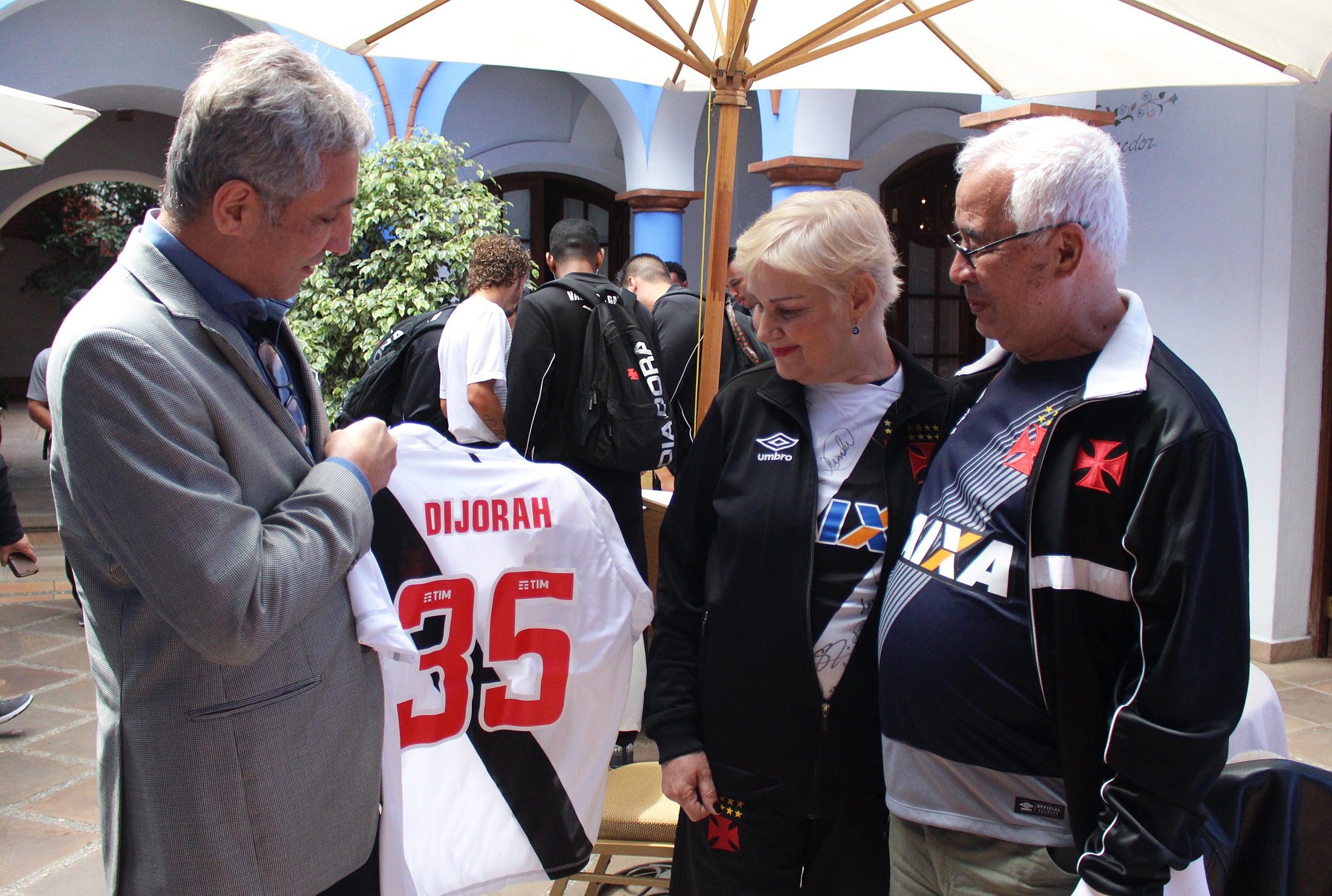 A especial data para André e Dijorah Araújo não passou em branco para o Vasco da Gama. Poucos momentos após desembarcar em Sucre, o presidente Alexandre Campello fez uma homenagem para o casal no hotel onde a delegação cruzmaltina está concentrada. Na ocasião, o dirigente cruzmaltino entregou duas camisas personalizadas, agradeceu o apoio e enalteceu a lealdade dos torcedores, que viajam com seus próprios recursos.