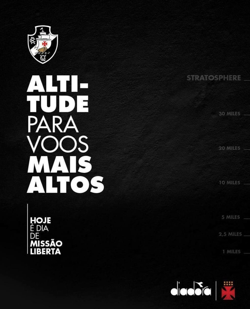Diadora divulga mensagem de apoio ao Vasco: 'Altitude para voos mais altos'