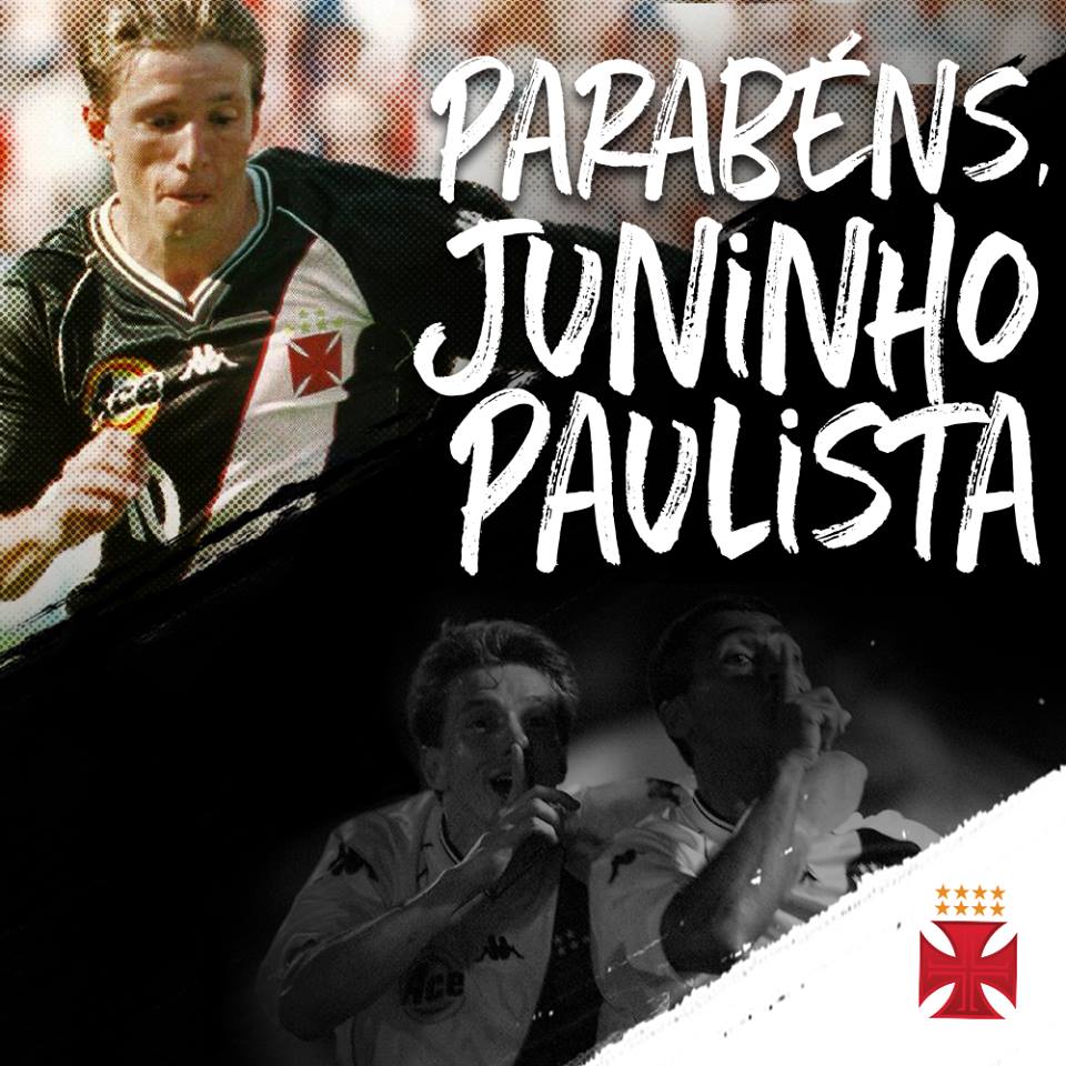 Vasco parabeniza o aniversariante do dia Juninho Paulista, campeão brasileiro e da Mercosul em 2000