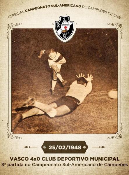 Há 70 anos, no dia 25 de fevereiro de 1948, o Vasco ratificou diante do Municipal, do Peru, a sua condição de favorito à conquista do Campeonato Sul-Americano de Campeões. Após a esmagadora vitória do Gigante da Colina sobre o Nacional, a equipe vascaína deu outro show e goleou a equipe peruana por 4 a 0. Destaque para Friaça, que marcou dois gols na partida. Lelé e Ismael também anotaram os seus gols e ajudaram a constituir o imponente placar.
