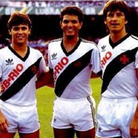 Há exatos 31 anos, Dunga - à direita - fazia a sua primeira partida com a camisa do Vasco. Atuando ao lado de craques como Romário e Geovani, o volante estreou com vitória: 3 a 0 sobre o Goytacaz, pelo Campeonato Carioca de 87. O Cruz-Maltino se sagraria campeão estadual naquele ano.
