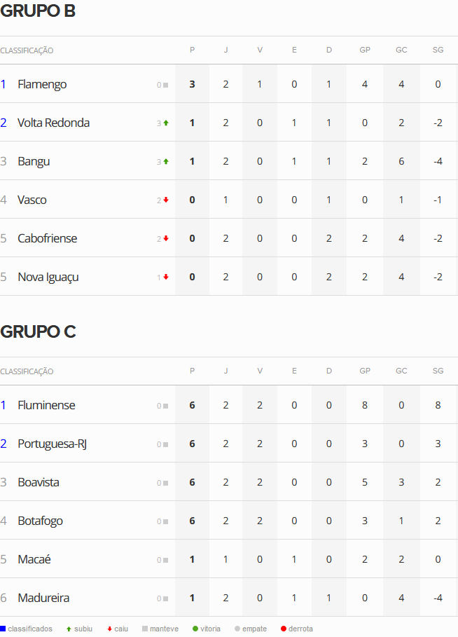 O Vasco, que perdeu para a Portuguesa por 1 a 0 neste último domingo, está na 4ª colocação do Grupo B da Taça Rio após o término da 2ª rodada. Diferentemente dos seus adversários de grupo, os vascaínos só atuaram uma vez na competição, já que a partida contra o Macaé, válida pela 1ª rodada, foi adiada e acontecerá na próxima quinta-feira.