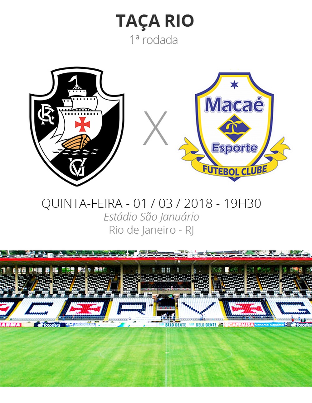 Vasco e Macaé se enfrentam nesta quinta-feira, às 19h30 (de Brasília), em São Januário, pela primeira rodada da Taça Rio. Apesar de a segunda já ter sido disputada, a partida entre as duas equipes havia sido adiada por causa do jogo do Cruz-Maltino contra o Jorge Wilstermann, pela Libertadores, fora de casa.