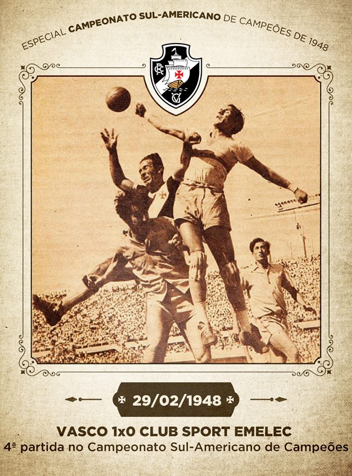 Há 70 anos, o Vasco venceu o Club Sport Emelec, do Equador no quarto jogo do Gigante da Colina na competição continental, que permanecia invicto ao ter vencido todos os seus compromissos. O Emelec utilizou da retranca para tentar parar o Expresso da Vitória, porém o gol de Ismael deu a vitória ao Vasco, isolando o Cruzmaltino na dianteira do torneio.
