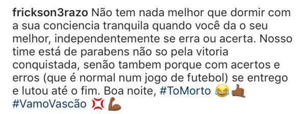 Erazo sentiu bastante quando foi expulso e o prejuízo podia ter sido irreversível na Libertadores. Hoje, não foi muito bem, mas voltou ao time titular e conseguiu a vitória. Nas redes, mais aliviado, deixou um recado #lanceVAS