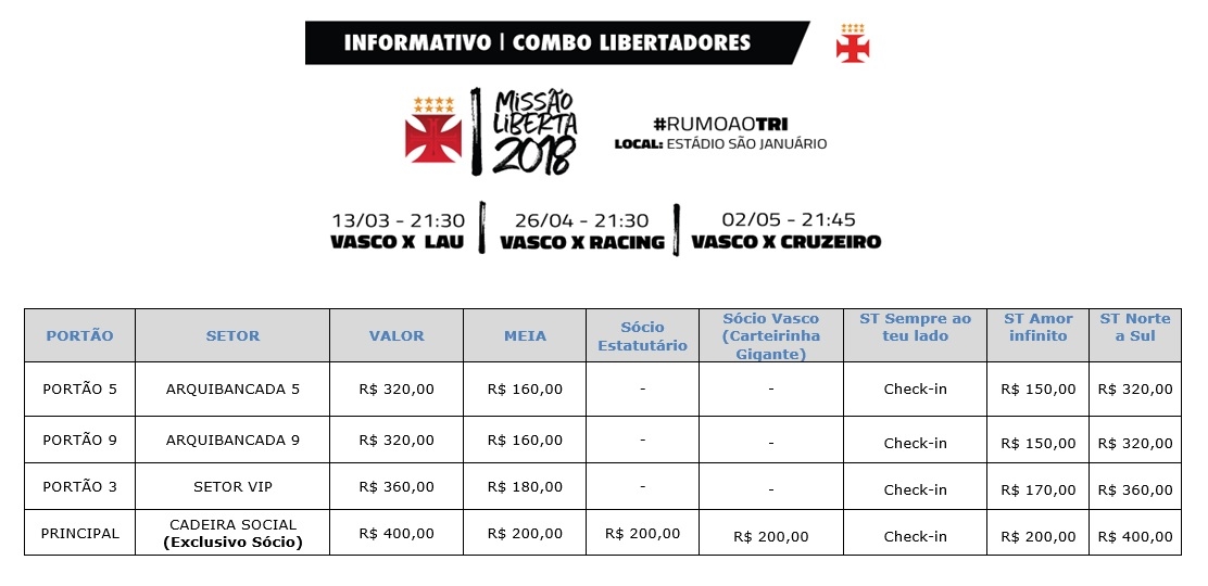 - Compra SÓCIO VASCO com a carteirinha do GIGANTE + Compra acompanhante