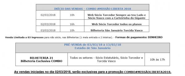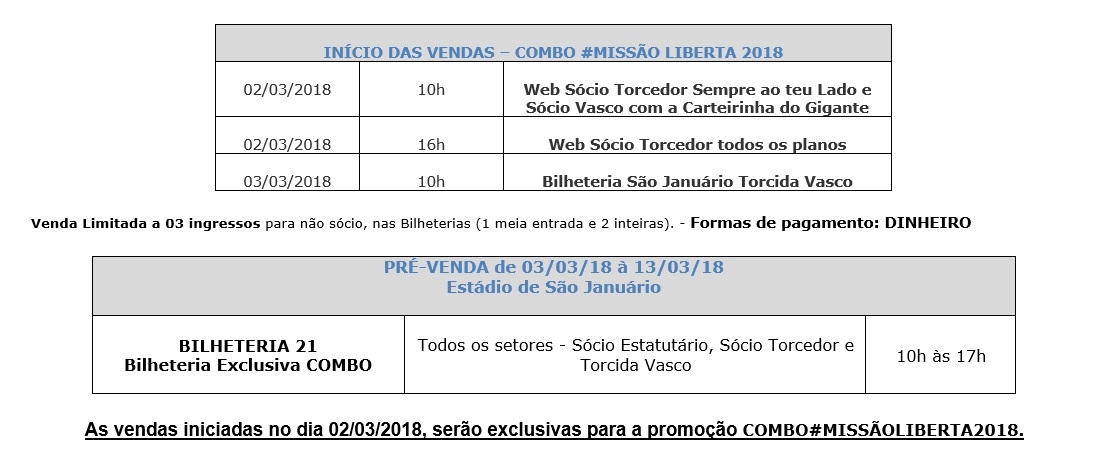As vendas iniciadas no dia 02/03/2018 serão exclusivas para a promoção COMBO#MISSÃOLIBERTA2018.